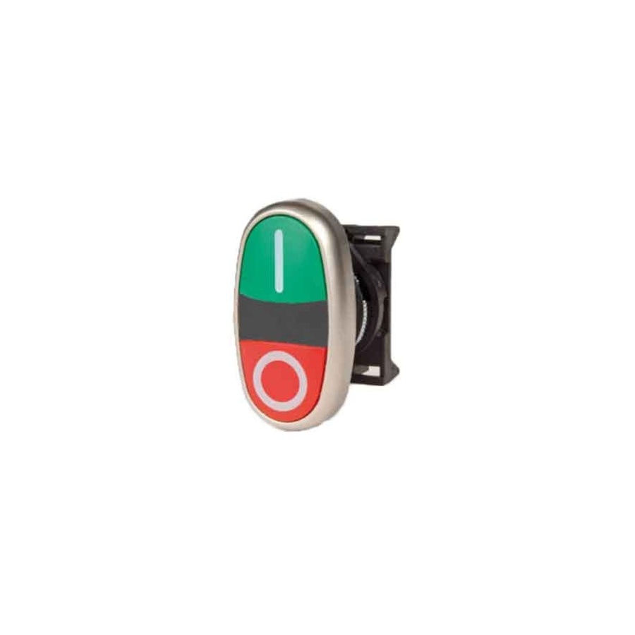 Popis: Dvojité tlačidlo má 2 pozície nepodsvietiteľné (zelená I, červená O). Tlačidlo je určené do otvoru 22mm. Stupeň ochrany IP67. Rad Nickel line.