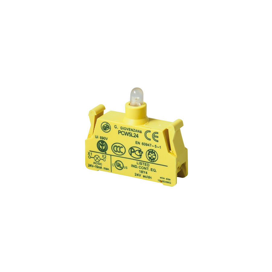 Popis: Svetelný blok s napájaním 220V AC.Pružinové svorky pre káblové zapojenie.