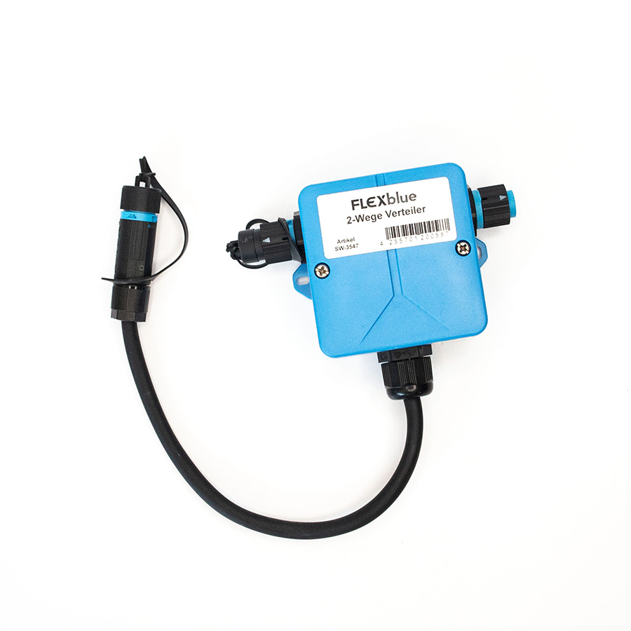 Popis: FLEXBlue rozdeľovač osvetlenia Y. Rozdeľovacia skrinka na pripojenie 2 LED pásov