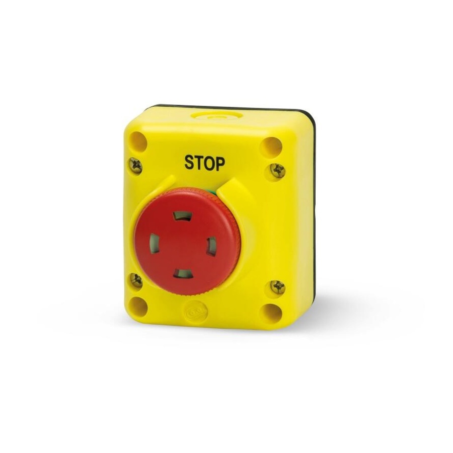 tlačidlo STOP (1NC) s aretáciou, ťahom povoliť, v krabičke, vr. priechodky M20, IP65