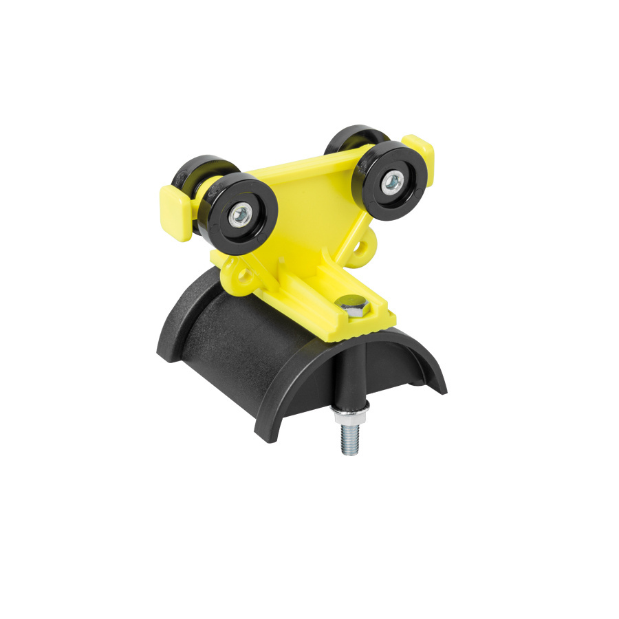 Popis: Plastový vozík s plastovými kolieskami a sedlom C profilu 30 pre káblové vlečky plochý kábel, šírka sedla 55mm.