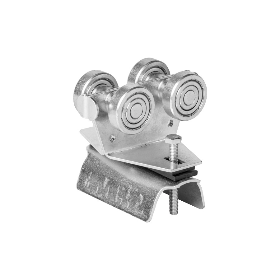 Popis: Oceľový vozík pre káblové vlečky C profilu 41. Kolieska sú na guličkových ložiskách, plastové sedlo.