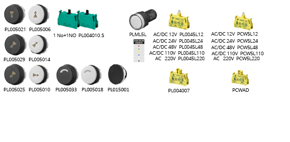 Ovládacie tlačidlá so symbolmi: PL005004, PL005019; PL005008, PL005023; PL00505012, PL005027; PL005006, PL005021; PL005010,PL005025; PL0050114, PL005029... atď.